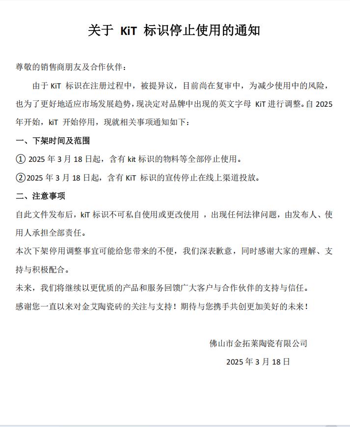 • 關于KIT標識停止使用的通知——關于KIT標識停止使用的通知